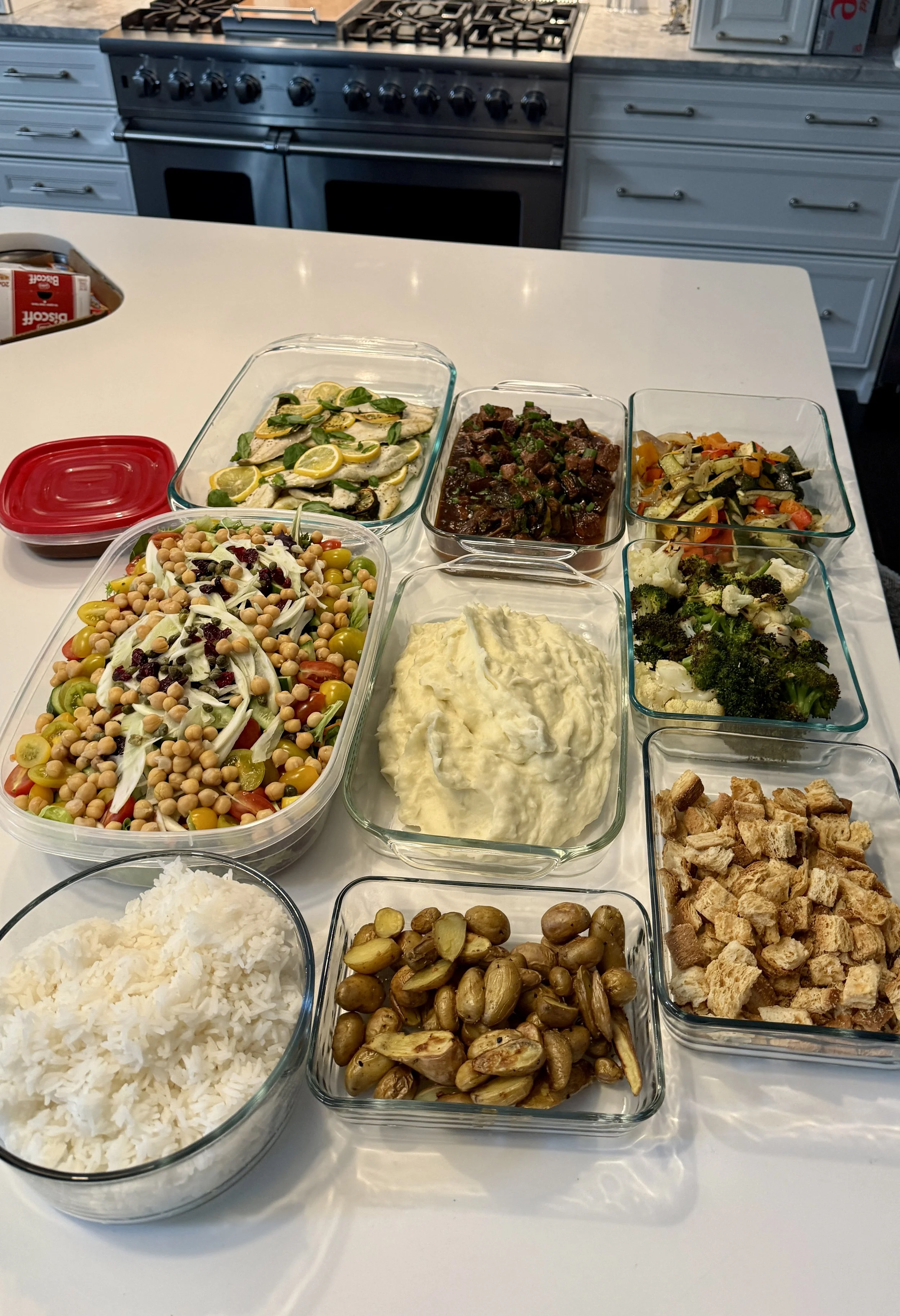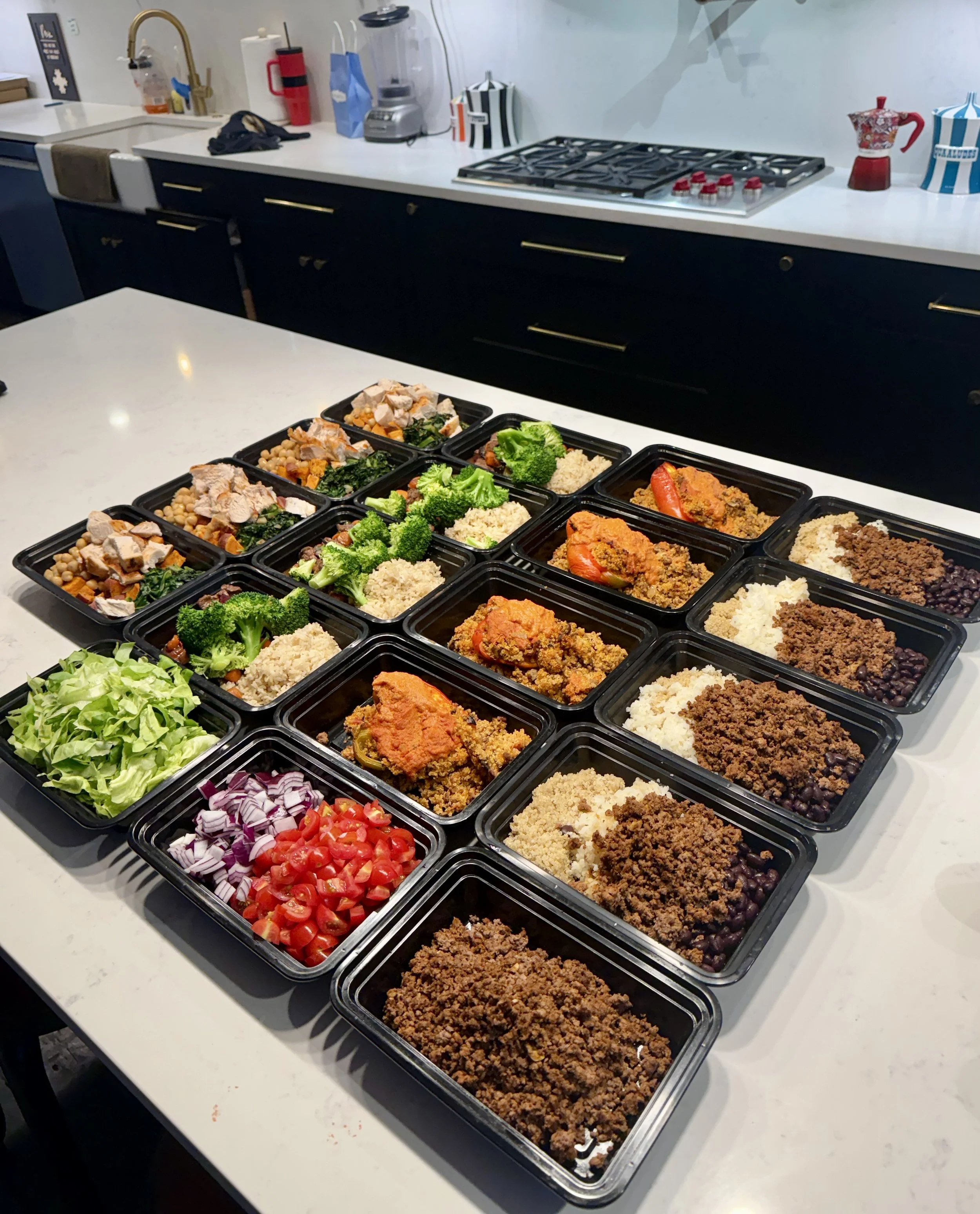 We package and portion your meals into your preferred storage containers, neatly stocking your fridge. You simply heat and enjoy a hot, delicious meal whenever you're ready—no further planning or effort required. We will then schedule your next session to keep your fridge stocked!